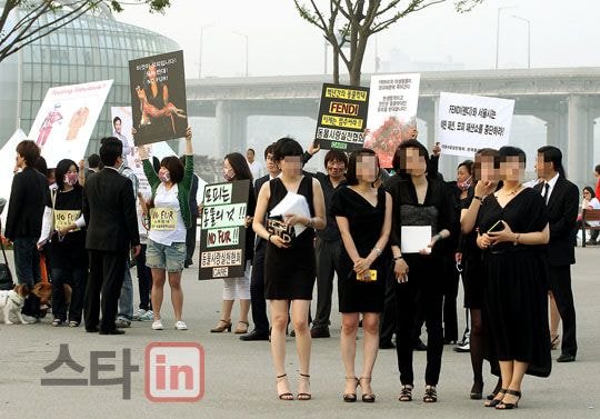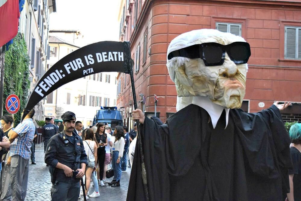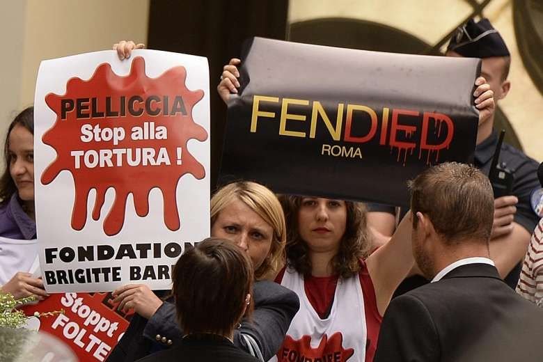손님 맞이하는 펜디 관계자 VS 시위하는 사람들의 사진이 인상적이네,,