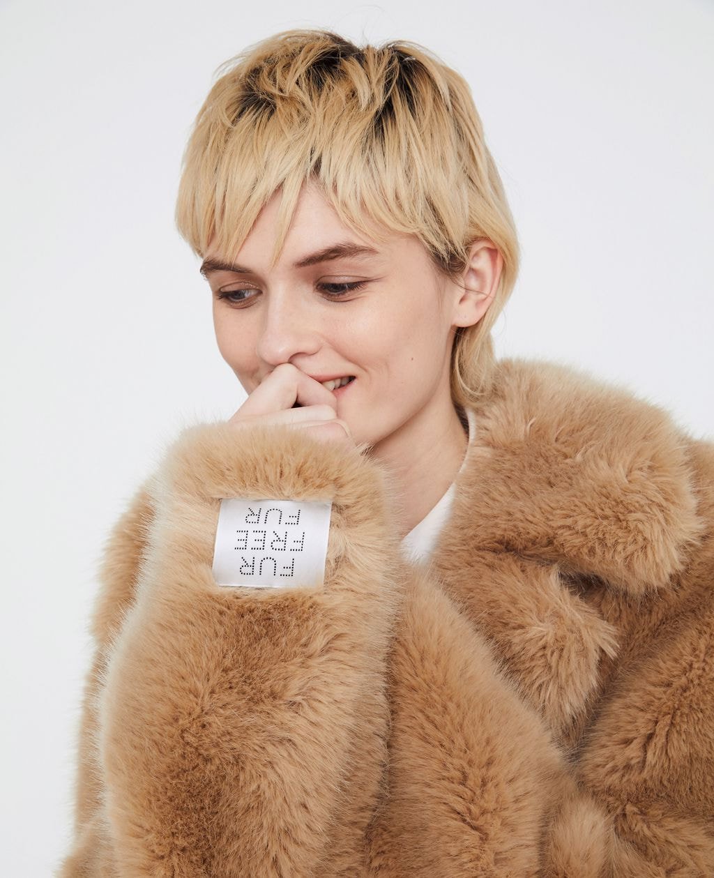 페이크퍼 코트에 붙인 태그. "FUR FREE FUR"